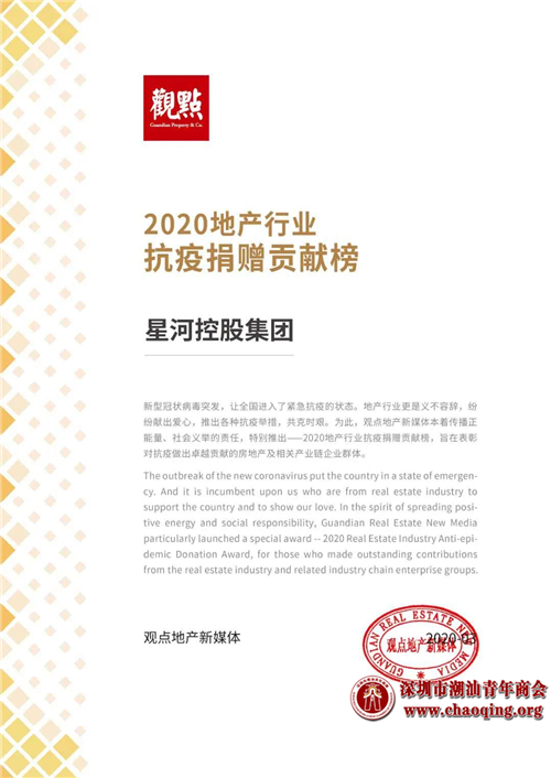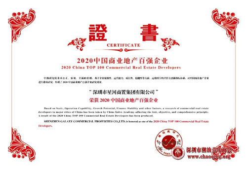 3月17日,由中国房地产TOP10研究组主办的“2020中国房地产百强企业研究成果发布会”暨“第十七届中国房地产百强企业家论坛”在线上隆重发布。凭借出色业绩及雄厚实力,本会荣誉会长、常务副会长、副会长单位星河控股集团连续九年名列“中国房地产百强企业”榜单,今年位列第53名。同时,控股集团关联方星河商置连续两年荣获“2020中国商业地产百强企业”。