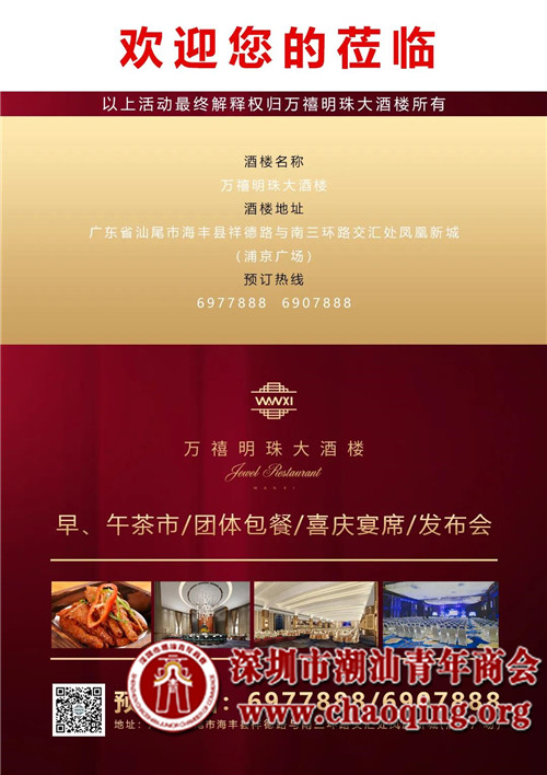 由本会副会长单位广东浦京集团发起并参与投资的汕尾万禧明珠大酒楼于2020年4月27日低调启航试业。酒楼位于汕尾市海丰县海丰浦京广场,经过长时间的精心筹备,以最好的一面呈现给广大市民朋友。