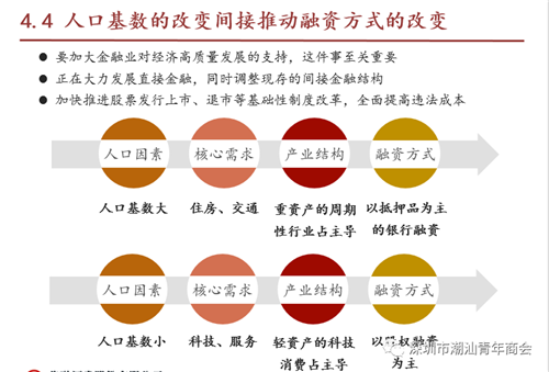 疫情过后,股市将迎来新的发展阶段。庞云川表示,中国经济将从速度、结构和动力三方面发展出新常态,由高速增长转为中高速增长,结构不断优化升级,并且从要素驱动、投资驱动转向服务业发展及创新驱动。他还从人口结构、人口基数等方面分析我国经济发展模式和融资方式的改变。他指出,经济增速放缓往往是长期牛市的起点,注册制或将成为A股创新高的机会。