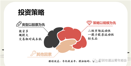 随后,靳冰馨向观众介绍了四种投资策略。第一,定期投资。无需择时,获取收益概率高。第二,买入持有。专注ETF高净值机构,获取稳定均衡收益。第三,交易型。判断市场,博取风险收益。第四,核心加卫星。以ETF(核心)和股票(卫星)获取超额收益。