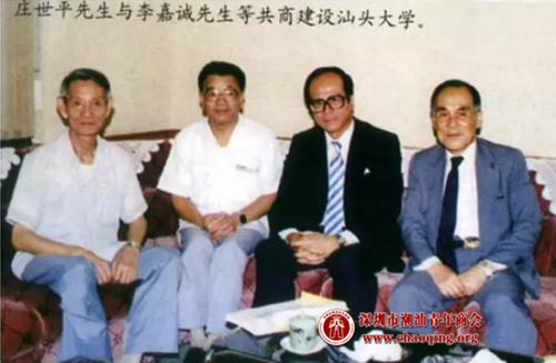 庄世平先生与李嘉诚先生和吴南生同志等共商建设汕头大学