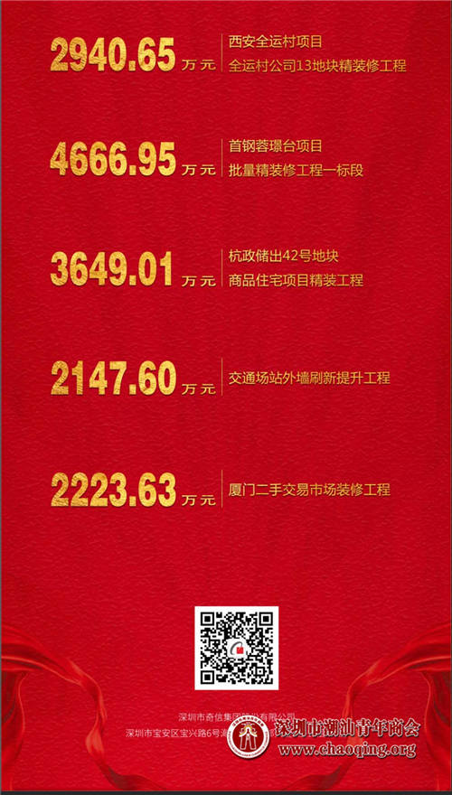 近期,我会常务副会长单位奇信股份好事连连,喜讯不断,相继中标西安全运村项目、首钢蓉璟台项目、杭政储出42号地块商品住宅项目、交通场站外墙刷新提升工程和厦门二手车交易市场(一期)装修工程,总中标金额约1.56亿元。