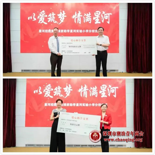 2019年,星河控股捐资8000万元,助力武进教育。星河控股集团董事长黄楚龙先生代表集团,向武进区教育局捐赠7500万元,助力星河分校建设。星河控股集团副董事长兼总裁姚惠琼女士代表集团,向星河实验小学教育集团捐赠500万元,成立“楚才奖教基金”,助力星河实验小学教育集团优秀教师培养。星河控股集团成立三十余年间,在发展教育方面的捐款已达18亿元,在全国捐建学校22所。
