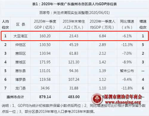 除此之外,慧聪集团总部已搬迁至大亚湾,截至2020年6月27日,17家公司入驻员工297人,营业收入达到33.92亿元。同时还有光弘科技、比亚迪等众多知名企业早已布局大亚湾,据资料显示,2020年上半年,大亚湾人均GDP达到6.84万元,在全市各区中位居第一。