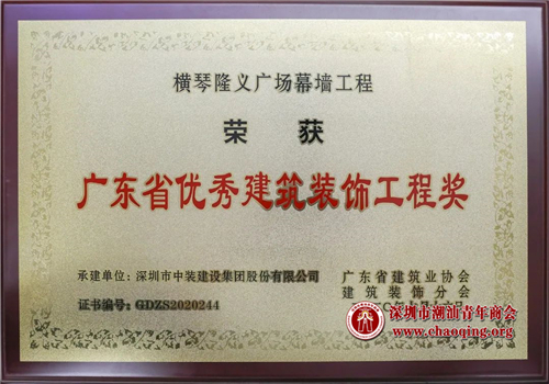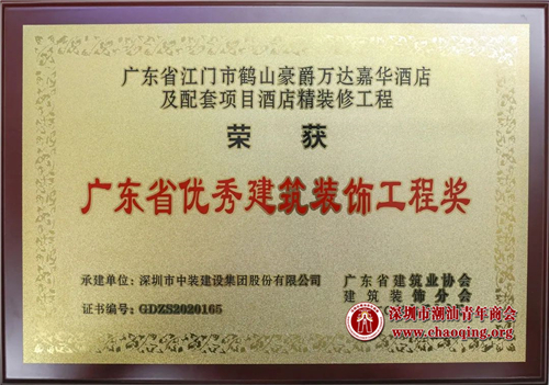 日前,2020年“广东省优秀建筑装饰工程奖”评审工作在经过仔细筛选与严格评审后圆满结束,本会副会长单位中装建设(股票代码002822)参建的3项工程——广东省江门市鹤山豪爵万达嘉华酒店及配套项目酒店精装修工程、新宙邦科技大厦装修工程、横琴隆义广场幕墙工程,荣获广东省建筑装饰工程最高荣誉奖“广东省优秀建筑装饰工程奖”。
