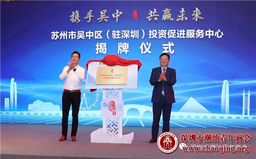 为进一步加强招商引资,推动和促进项目落实落地,更好地为投资企业提供便捷精准的优质服务,吴中区委、区政府决定设立苏州市吴中区(驻深圳)投资促进服务中心,由吴中区委常委、区政府常务副区长荣德明,深圳市海岸商业集团管理有限公司董事长陈穗生为服务中心揭牌。