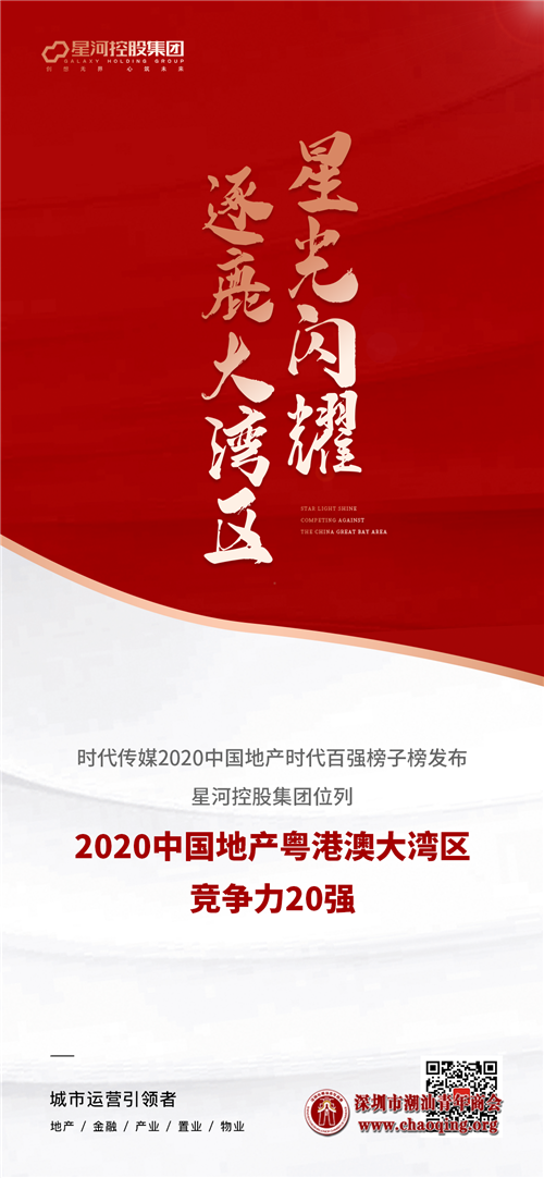 11月18日,作为时代传媒2020中国地产时代百强榜的子榜,《2020中国地产粤港澳大湾区竞争力20强》重磅出炉,本会荣誉会长、常务副会长、副会长单位星河荣登2020年中国地产粤港澳大湾区竞争力20强企业名单,以实力印证星河控股集团布局大湾区的超前眼光和稳健步伐。