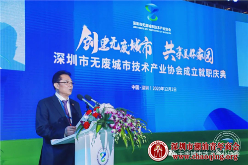 2020年12月2日,由深圳市潮汕商会会长、深圳市潮汕青年商会荣誉会长郑汉明任会长的深圳市无废城市技术产业协会在深圳丽思卡尔顿酒店举行成立大会暨就职庆典。大会以“创建无废城市,共享美好家园”为主题,深圳市政府、生态环境局、住建局、水务局、城管局、商务局、市监局、50多家兄弟商协会、全体会员单位等200多名嘉宾出席大会。