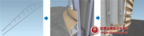 ▲多曲面铝方通施工工艺模拟