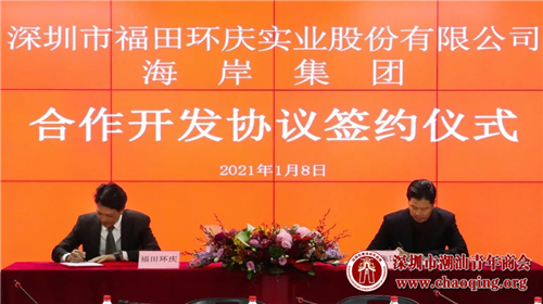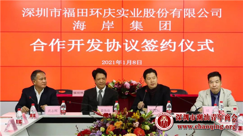 签约仪式由福田环庆公司副董事长、总经理黄志辉主持。福田环庆公司副董事长黄建兴、监事会主席黄子云、集资办主任黄国英等“三会”领导,以及深圳市潮汕青年商会会长、海岸集团董事长李奕标、海岸集团监事长陈穗生、董事总裁田磊等高层出席了签约仪式。