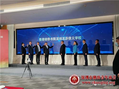 香港特区行政长官林郑月娥、深圳市委书记王伟中在深港两地通过网络在线方式出席活动并致辞。香港中联办副主任何靖,香港教育局局长杨润雄,深圳市领导高自民、杜玲、聂新平和深圳市教育局长陈秋明、龙华区委书记王卫、区长雷卫华等与办学主体香港培侨教育机构主席吴康民、香港培侨书院校监曾钰成、机构行政总监周世耀、香港培侨书院校长吴育智,本会荣誉会长、信义集团董事局主席李贤义,信义能源控股有限公司董事局主席李圣泼,本会常务副会长、信义教育总裁佘宋嘉等领导及嘉宾出席活动。仪式中,协议主体分别签署了相关协议并在同一时刻按下启动按钮,开启了深港双方在粤港澳大湾区国家战略下推动教育直接融合的崭新篇章。
