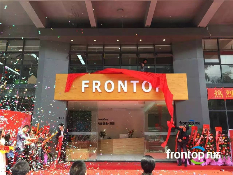 2、员工照片墙签名环节:签名墙以公司FRONTOP字母为底图背景,将员工个人照片组成FRONTOP,寓意众多凡拓人组成今天的凡拓;