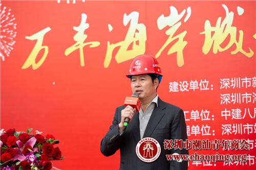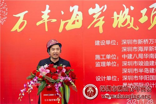 随后,海岸集团董事长李奕标发表致辞,他表示,今天是个好日子,项目封顶的同时又取得了预售证,双喜临门值得庆祝、纪念。他对万丰股份合作公司全体股民及三会成员一直以来给予海岸集团的充分信任及鼎力支持表示由衷的感谢,对中建八局按期保质完成封顶、设计及监理单位全心全意的付出、海岸员工辛勤的劳动致以诚挚的谢意。希望全体人员再接再厉、保质保量做到“全优”交付。