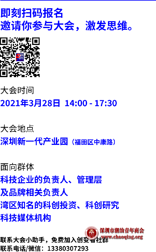深圳潮青商会协办湾区科技品牌创变大会,3月28日盛大启幕
