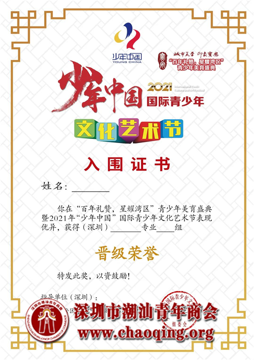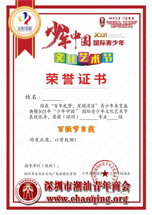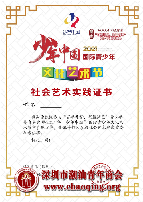 深圳潮青商会协办 “少年中国”2021年国际青少年文化艺术节(深圳),活动火热报名中