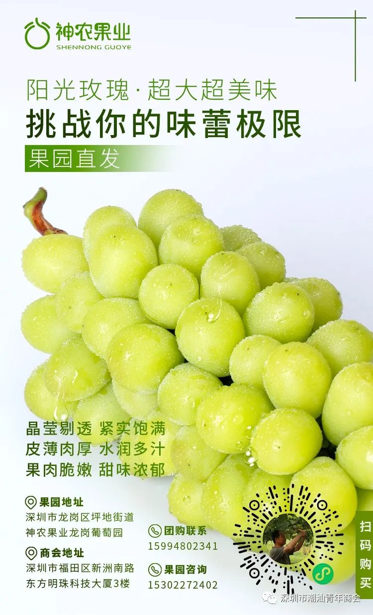 据悉,深圳神农果业有限公司是深圳国家农业科技园区核心项目单位,开展葡萄等植物新品种培育、栽培种植技术开发、葡萄新品种和新技术等农业高新科技产品业务。车旭涛团队自2012年起从全国各地引进60余种葡萄鲜食品种及砧木在广东进行试种,团队通过3年的探索,在被业界普遍认为不适于栽培葡萄的广东,成功栽培出了优质的阳光玫瑰葡萄并多次获得全国金奖。