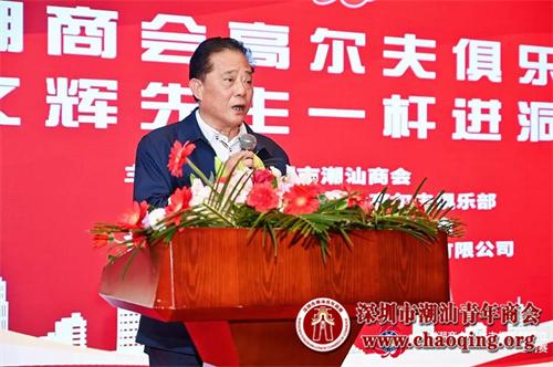李文辉主席表示,深圳潮商会高尔夫俱乐部的成立,是商会在新时代新的发展格局形势下,传承潮商精神的新尝试,旨在以球会友,在高尔夫运动中联谊奉献、拥抱健康、共创双赢!俱乐部成立之后,将合法合规举办活动,积极开展各项活动,增强会员凝聚力,培养会员诚信至上、自觉自律、挑战自我、超越自我的担当精神和社会责任感!他希望,大家能一如既往的支持俱乐部的建设,将它建成一个健康娱乐、互信互动、合作共赢的交流平台。