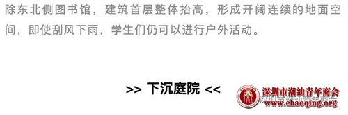 礼堂、专业教室等辅助空间调整至地下,阳光、空气自然引入,出门即是小花园,学习累了,这里是最好的放空处。