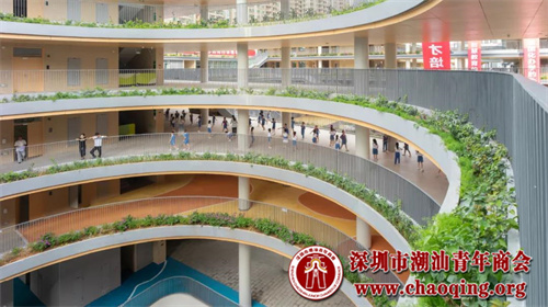 与架空层相连的退台设计,打破建筑封闭感,也将活动空间融入各楼层,课间活动自由、放松,不再受限于局促的走廊空间。