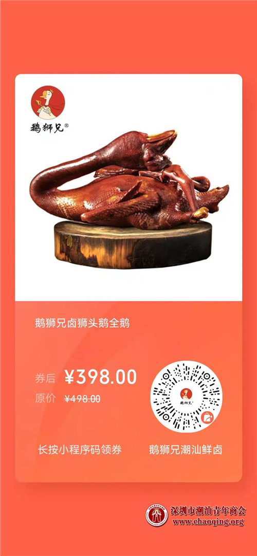 原价498元/只,潮青商会专属优惠398元/只(约8斤重),优先顺丰发货,活动最终解释权归鹅师兄品牌。