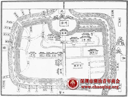 《潮州传》以文学笔法写潮州的历史。图为《永乐大典》中的潮州城图。