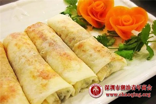 潮汕地区,清明有食薄饼的习俗。据说是从古代的寒食节习俗演变而来的。潮汕薄饼分饼皮、馅料两部分,食时用饼皮卷馅料成圆筒状就食。饼皮是用面粉拌水搅成粘糊状。馅分为咸、甜两种。咸馅是用豆芽、韭菜,配蛋丝、肉丝、香菇丝混合而成馅;甜馅是用“糖葱”为馅,具有潮汕独特风味。糖葱又称为葱糖,是用白糖和麦芽糖经过特殊加工而成的,雪白松脆,入口即散。明郭子章《潮中杂记》说:“潮之葱糖,极白极松,绝无渣滓”。可见,潮汕在明代就有食糖葱薄饼的习俗。