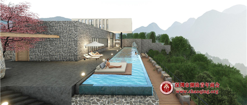 总共占地面积43.35亩,规划建筑面积约6000平方米,其中酒店及餐饮面积约5000平方米,项目一期已经建设部分约2300平方米,包含高级度假酒店本体,即将开始对外运营提供高端住宿和餐饮服务。