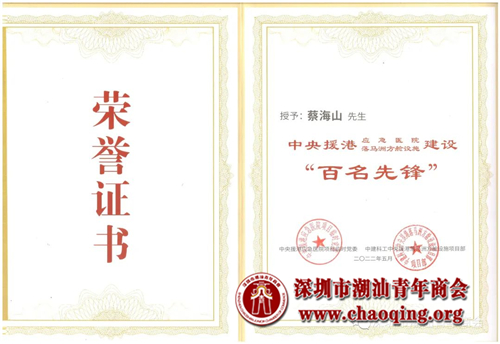为表彰先进,树立典型,大力弘扬敢为人先、孜孜以求的创新精神;迎难而上、艰苦奋斗的拼搏精神;精益求精、铸就卓越的工匠精神,经中央援港应急医院项目临时党委、中建科工中央援港落马洲方舱设施项目部研究决定,对援建香港应急医院项目的优秀单位、团队及个人进行表彰。其中,诚宇建设集团被授予“优秀单位”荣誉称号,荣获“突出贡献单位”锦旗、援建项目C2工区、C3工区“优秀参建单位”锦旗;蔡海山被授予“百位先锋”荣誉称号。