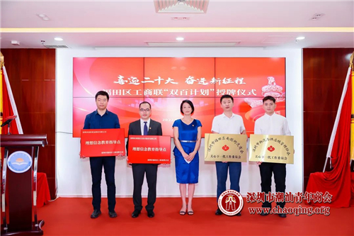 受国际潮青联合会会长、深圳市潮汕青年商会会长、海岸集团董事长李奕标委托,深圳潮青商会轮值会长、党委副书记、纪委书记、壹玖捌壹前海(深圳)创业投资管理有限公司董事长林泽练受邀参加活动,并代表商会领授“理想信念教育指导点”、“关心下一代工作委员会”牌匾。