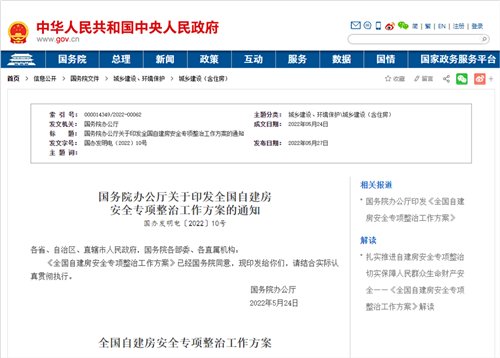 2、国务院办公厅关于印发全国自建房安全专项整治工作方案的通知