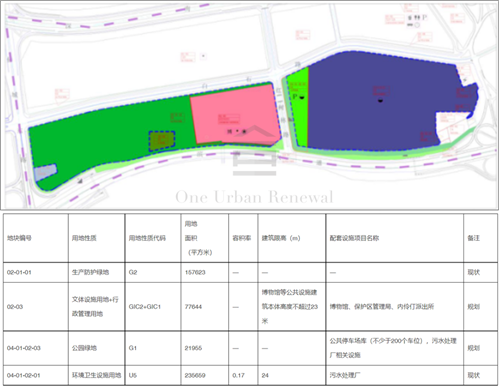 (二)02-03地块规划用地性质为文体设施用地+行政管理用地(GIC2+GIC1),容积率“-”,用地面积77644㎡,建筑限高(m)为“博物馆等公共设施建筑本体高度不超过23米”,配套设施为博物馆、保护区管理局、内伶仃派出所,备注“规划”;