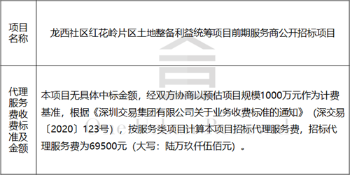 3、深圳市龙岗区龙岗街道龙西社区红花岭片区土地整备利益统筹项目前期服务商公开招标项目中标(成交)结果公示