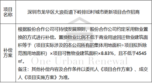 4、深圳市龙华区大浪街道下岭排旧村城市更新项目合作招商交易结果公告