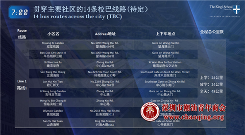 并且,现场周校长还向家长们展示了国王中小学目前拟定的14条校车线路,方便前海地区周边的学生上下学。未来,学校还会根据在读学生及家长的需求,对线路进一步优化。