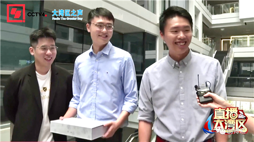 创博汇常务副总裁刘佳带着入孵团队接受央视记者采访。来自香港的王斌、谢伊竣是贰拾肆节(深圳)供应链管理有限公司的创始人,他们畅谈在前海的创业之路和业余生活,同时展示了团队研制的香港回归25周年的礼盒。