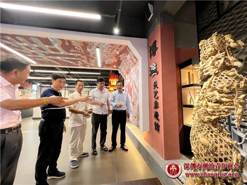 7月17日,深圳潮青商会驻会会长黄坚泰一行参观汕头市首届民间工艺精品展,受到汕头市民间文艺家协会主席姚望新的热情接待。商会顾问、潮阳书法家协会副主席陈俊毅、潮阳书法家协会顾问陈焕盛等参加了活动。 汕头市首届民间工艺精品展由广东省民间文艺家协会指导,由汕头市文学艺术界联合会主办,汕头市民间文艺家协会、澄海区文化广电旅游体育局、澄海区文学艺术界联合会、广益街道党工委承办。