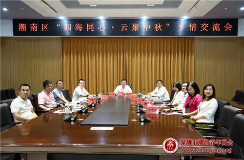 2022年9月9日下午,汕头市潮南区举行“四海同心 云聚中秋”乡情交流会,现场视频连线海外侨领、香港潮籍知名人士和各地潮商会代表,一起畅叙乡谊,共迎中秋,共谋发展。区委书记许广圻参加会议并作讲话。区委副书记、区长张晓铿,区委副书记陈邦棉参加会议。