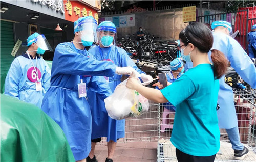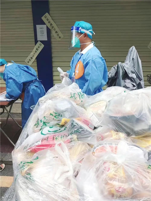 ▲ 由于中风险区实行管控措施,期间“人不出区、错峰取物”。工勘志愿者们顶住高温和体力考验,将居民的外卖和快递由村口转运至各楼栋巷口,最大限度地保障居民的日常生活所需。