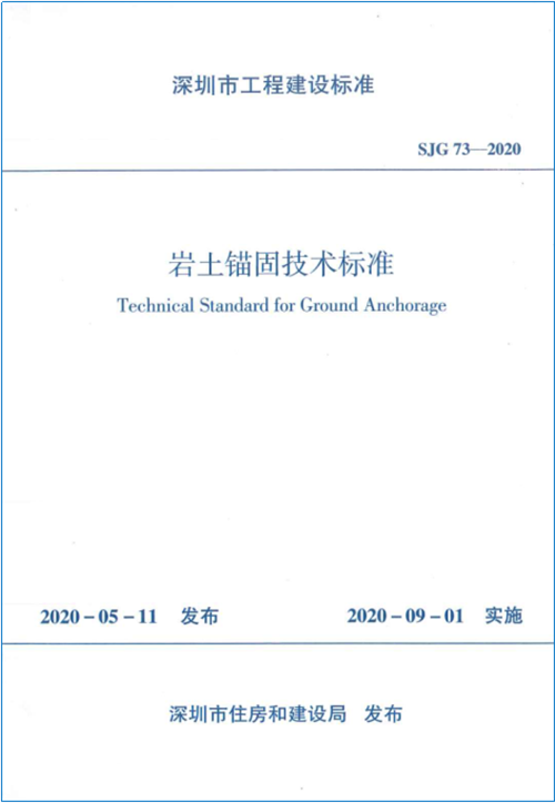 深圳市工程建设标准《岩土锚固技术标准》SJG73-2020