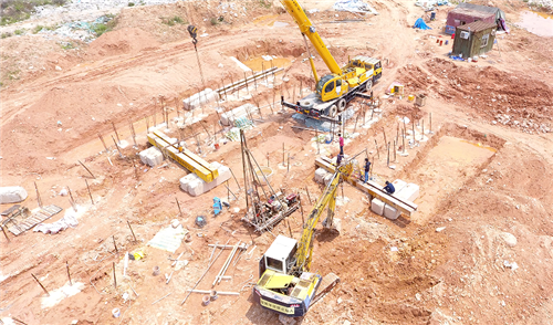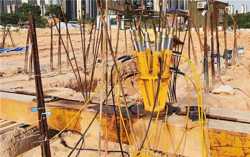 针对全钢筋笼咬合桩施工时二序桩切断一序桩钢筋笼钢筋的问题,工勘集团经过多个工程实践,创新性提出了利用液压抓斗成槽机分幅一次性完成五根组合桩的成孔施工方法。通过依次下入五根桩孔的钢筋笼,并同时灌注混凝土,顺利解决了在不良地层(块石、淤泥层)条件下全钢筋笼咬合桩施工时因二序桩施工切断一序桩钢筋笼钢筋的难题,达到了质量可靠、施工安全、文明环保、高效经济的施工效果。