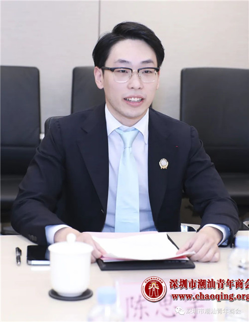 陈会长认为,深圳是改革开放的前沿城市,是大湾区的引擎,拥有着地理位置、产业结构以及人才资源等多重优势。而深圳潮青商会拥有1000多家成员企业,是在深潮籍新一代青年学习培训、内外交流、投资合作、互动发展的重要服务平台。深圳潮青商会的宗旨“传承、创新、创未来”也与北京潮商青委会的办会理念不谋而合,他诚挚邀请深圳潮青商会参与到第十一届国际潮青联谊年会的筹备中来。此外,北京潮商青委会计划在第十一届年会落幕后举办一场“侨青、侨领论坛”,期待能与深圳潮青商会共同举办本次论坛。