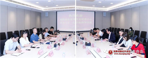 2022年11月10日下午,四川省绵阳市驻深圳投资促进中心主任龚力一行莅临深圳市潮汕青年商会交流,受国际潮青联合会会长、深圳市潮汕青年商会会长、海岸集团董事长李奕标的委托,深圳潮青商会驻会会长、党委书记黄坚泰热情接待了龚力一行,双方在南山海岸大厦召开座谈会。