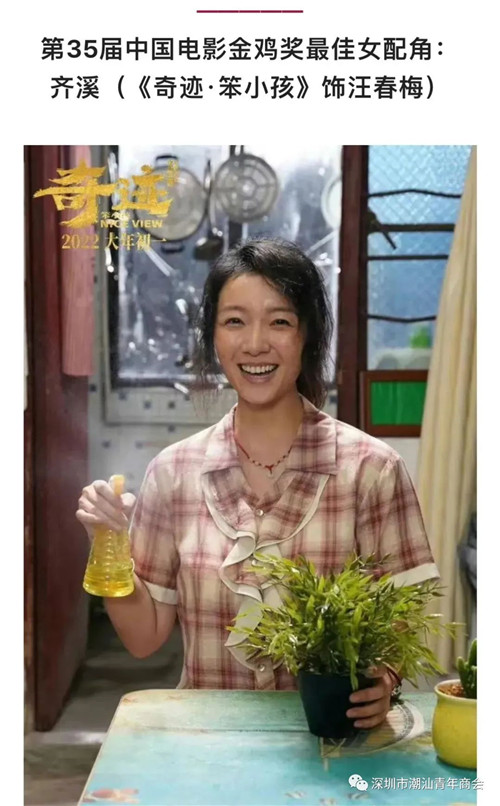 深圳市常务副会长林春浩的企业金钥匙集团参与投资的电影《奇迹·笨小孩》收获最佳女配角奖(齐溪《奇迹·笨小孩》)。