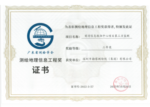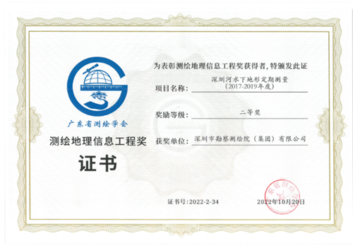 广东省测绘学会组织开展的2022年度全省优秀测绘地理信息工程奖评选活动结果已公布,经过严格的评审和公示,深圳市潮汕青年商会副会长蔡衍钻的企业深勘集团荣获四项优秀测绘地理信息工程奖。其中“深圳市城市轨道交通8号线一期工程第三方监测”和“深圳河水下地形定期测量(2017-2019年度)”荣获二等奖,“2020-2021年度深圳市1:1000地形图(对象化)动态修补测”和“前湾信息枢纽中心项目第三方监测”荣获三等奖。