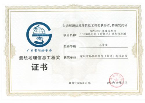 深勘集团荣获2022年广东省优秀测绘地理信息工程奖多项、广东省测绘学会先进集体荣誉称号