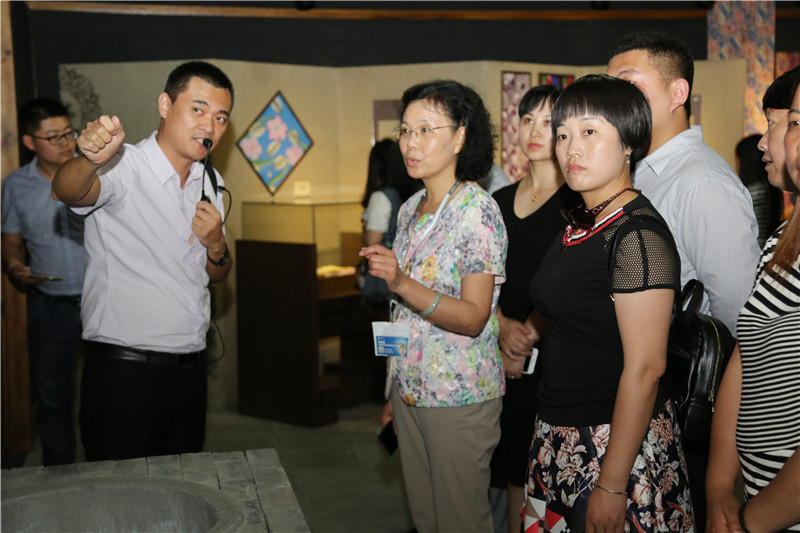 5月12日下午,贵州省铜仁市市委常委、宣传部部长刘婕一行40余人莅临中丝园参观考察。刺绣展厅里图案秀丽、色彩典雅、针法丰富、绣工精细的刺绣藏品吸引来宾们驻足观看,赞不绝口。中华旗袍馆内各主要流派及国内外设计大师的经典旗袍作品及生活馆内精美的丝绸艺术品同样受到了来宾们的关注和喜爱。刘婕部长表示,中丝园模式非常值得肯定,铜仁当地有独具特色的“叶脉绣”,希望能与中丝园开展丝绸文化及其他传统文化项目的合作,推动铜仁文化产业的发展。