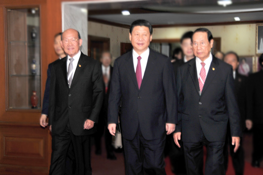 中国国家副主席习近平在本会主席吴宏丰博士和泰国潮州会馆主席陈汉士博士的陪同下进入会场