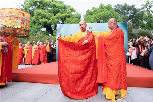 广东省佛教协会常务副会长、顺德宝林寺方丈宏满大和尚授祖衣