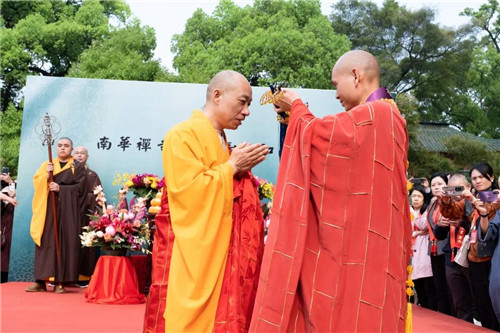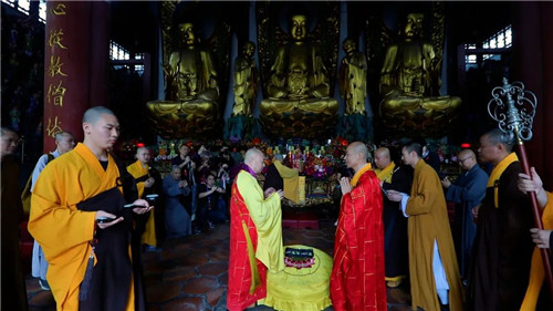 卓杖呼:升!大众高声唱诵佛号,随后缓步登上法座。至此,南华禅寺新一任法主诞生,预示着法脉传承,后继有人。