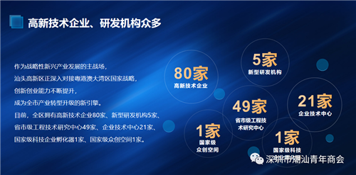 作为战略性新兴产业发展的主战场,汕头高新区正深入对接粤港澳大湾区国家战略,创新创业能力不断提升,成为全市产业转型升级的新引擎。目前,全区拥有高新技术企业80家、新型研发机构5家、省市级工程技术研究中心49家、企业技术中心21家、国家级科技企业孵化器1家、国家级众创空间1家。